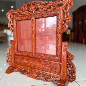 Khung ảnh thờ 20×30 được làm từ gỗ hương ta gia lai, gỗ quý hiếm của Gia Lai. Dùng cho cỡ ảnh thờ di ảnh 20cx30cm. Với chất gỗ tự nhiên nền đỏ cánh gián, phun pu màu nâu sậm giả cổ, giúp Khung Ảnh Thờ có một vẻ đẹp trầm, hoài cổ hơn. Thiết kế tinh sảo, làm nguội kỹ và sắc nét mang tới một sản phẩm Khung Ảnh Thờ giá trị về chất liệu và kiểu dáng.